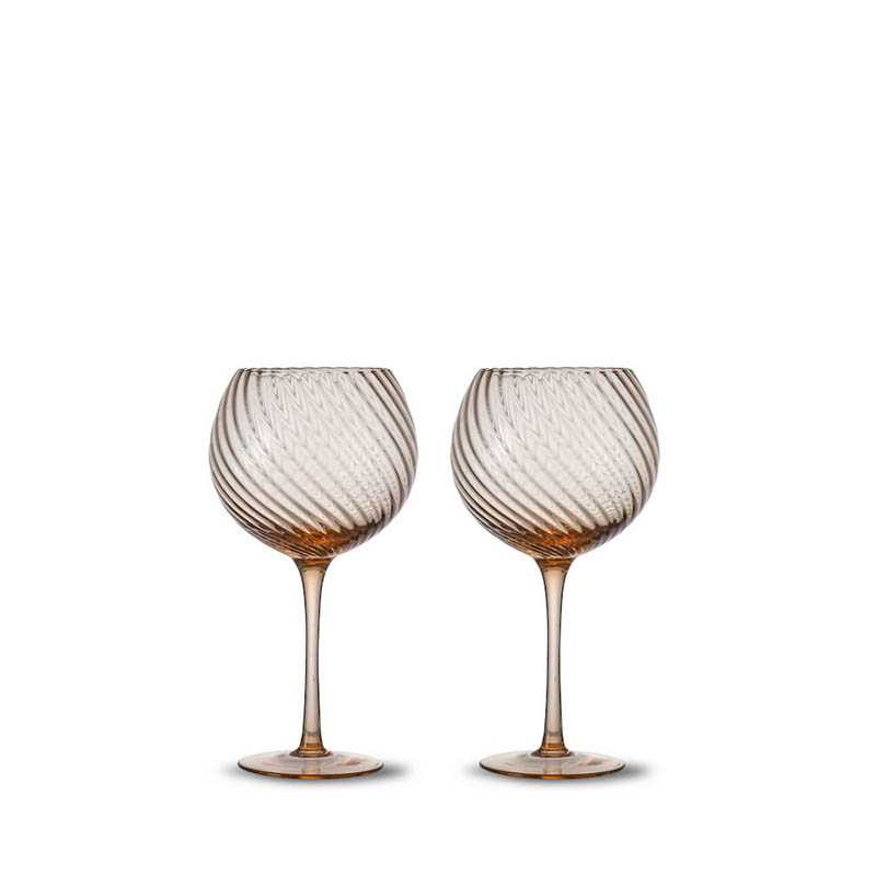 Our Italian coupe is inspired by the vineyards, where the small glass feels both luxurious and holds just the right amount of drink to keep it cold. The glass is beautiful and delicate, perfect for small drinks or desserts. It features a lovely striped pattern and is made of colored glass for a more fun effect. The color is a beautiful brown that matches everything. In the Opacity peach family, you will also find champagne coupes, wine glasses, and round water glasses. Designed by Byon Studio. Delivered in a 2-pack in a Byon box. Material: glass Weight: 160 g Width: 100 mm; Height: 110 mm; Length: 100 mm; 15 cl Color: peach