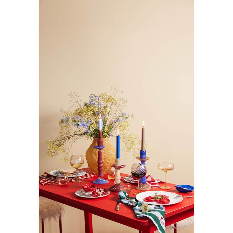 Glass Magaluf is round as the sun and fits perfectly in your hand. The glass is delivered with a matching straw in kitschy coloured glass. Note that coloured glass is one of the biggest trends this spring. Glass. Straw: 180 mm