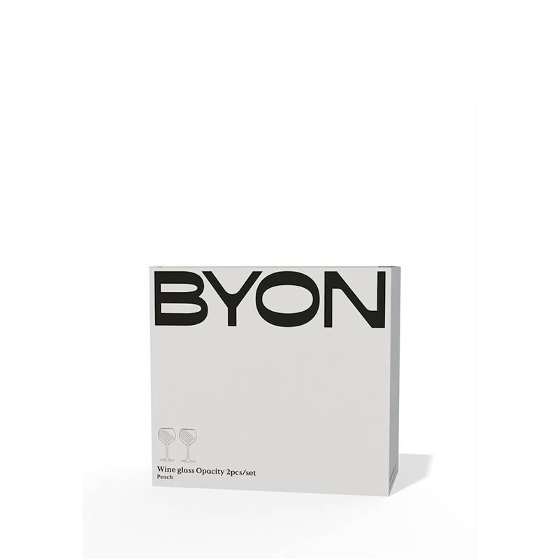 Opacity wine glass has been designed for a perfect experience - on the table, in the hand, and while drinking. It's a thin and delicate wine glass with a perfect contrast between luxury and boldness. The glass features a beautiful striped pattern and is made of colored glass for a fun effect. The color is a lovely peach shade that matches well with everything. In the Opacity peach family, you will also find champagne coupes, Italian cups, and round water glasses. Designed by Byon Studio. Delivered in a 2-pack in a Byon box. Material: glass Weight: 230 g Width: 100 mm; Height: 190 mm; Length: 100 mm; 47 cl Color: peach