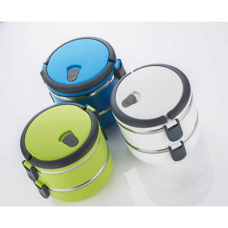 Kontejner na jídlo s nerezovým interiérem vám umožní přenášet dvouchodové obědy jednou rukou díky pohodlným sklopným madlům. Nádoba má dvě oddíly - horní s těsněním, které minimalizuje riziko vylití obsahu. Celková kapacita: 1400 ml.