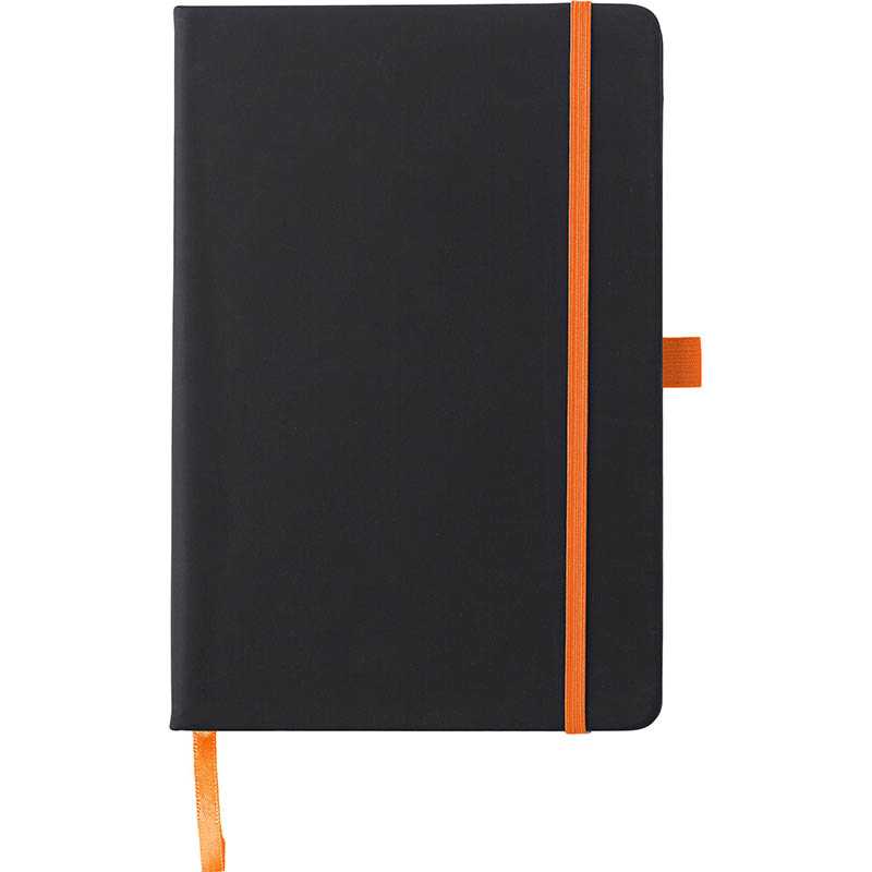 Zápisník A5 s tvrdou obálkou z 600D RPETu. 160 linkovaných stránek z recyklovaného papíru (80 listů). Zavírací gumička a a záložka v ladící barvě.