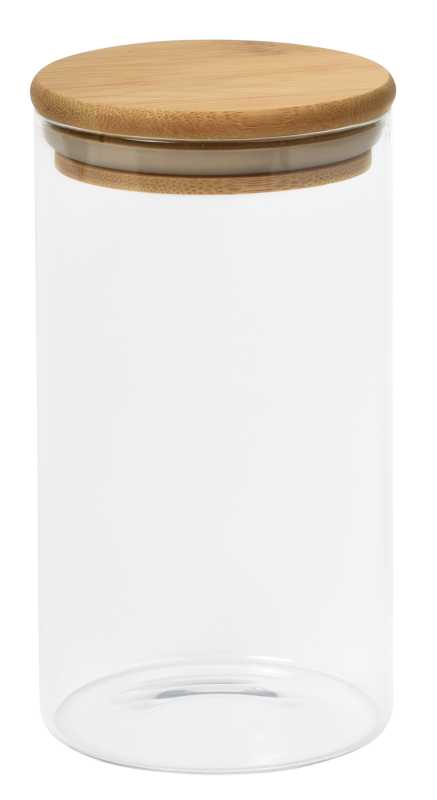 Dóza z borosilikátového skla s bambusovým viečkom a silikónovým krúžkom. Táto dóza s objemom 1000 ml by nemala chýbať v žiadnej kuchyni.
