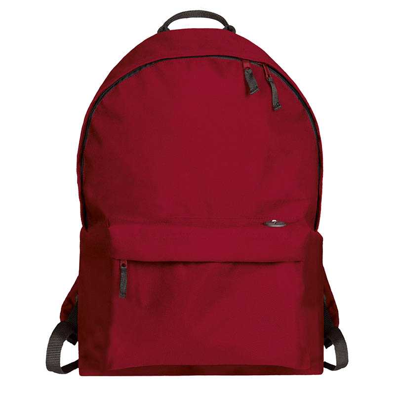 Classic Backpack. Made of thick and durable outer waterproof fabric with PU inner lining. Back and shoulder straps with foam padding inside for greater comfort. Top handle for easy hand carrying. Large main compartment with double-pull zipper that allows opening on both sides, an exterior zippered pocket for convenient storage and cable outlet. Suitable marking methods: screen printing, transfer printing, vinyl application, embroidery.Ideal for sports, school and for a corporate gift.