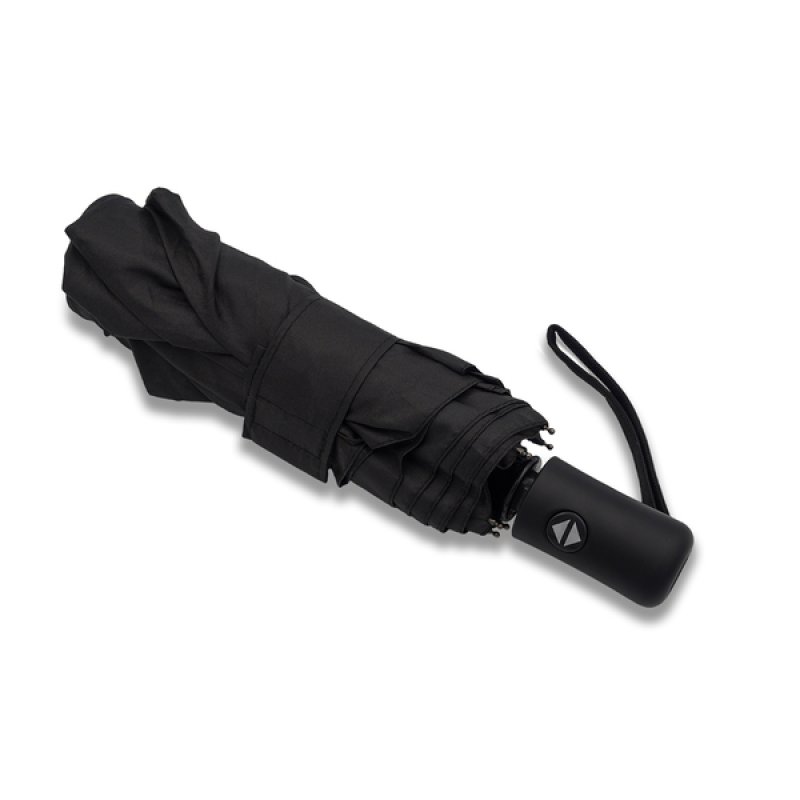 Automatický skladací dáždnik. Nosná rúčka a rebrá z kovu a sklolaminátu. Odolný proti vetru. Mäkká rukoväť s pútkom na ruku. Balený vo vodeodolnom puzdre.
