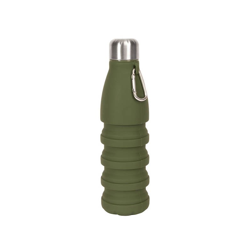 Product Name: Stig foldable bottle Product Number: 5018348 Product Fabrics: Silicone/stainless steel Description: Stig is a lightweight and practical water bottle for the whole family in foldable BPA-free plastic. It can easily be hooked onto the backpack and be stored folded in the bag. Easily unfolded when water is added. Available in three lovely colours and can be used for leisure as well as in the big city.
