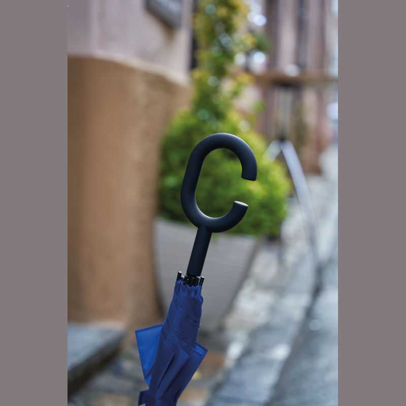 Dáždnik z Pongee materiálu s rukoväťou v tvare C, ktorú možno prakticky zavesiť na zápästie.