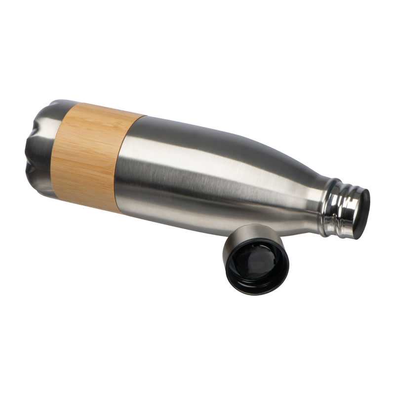 Obľúbená termo fľaša z nehrdzavejúcej ocele s modernými prvkami z bambusu na uzávere a spodnej časti fľaše. Objem: 520 ml.