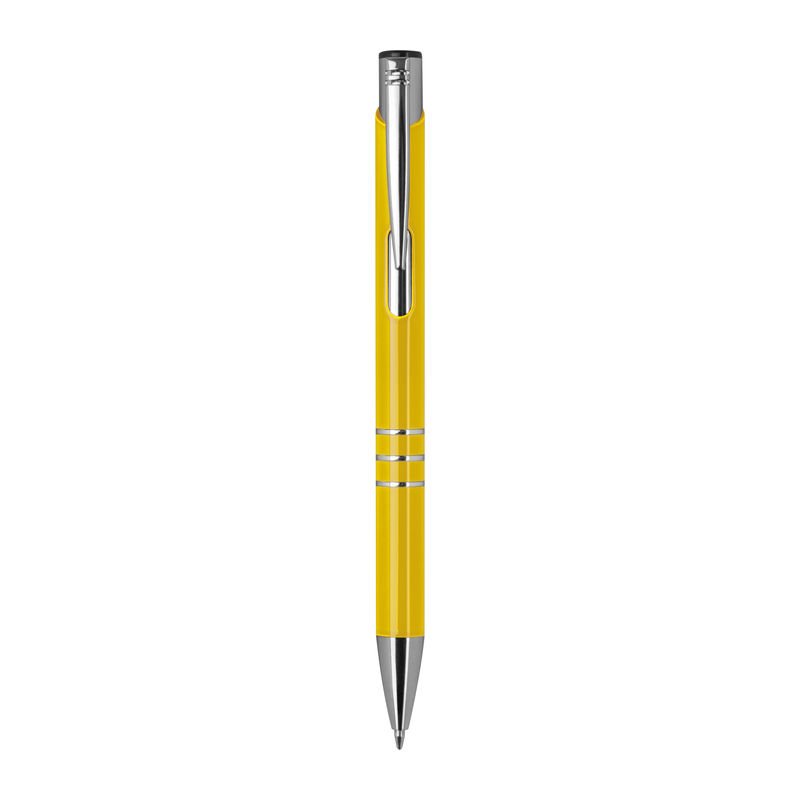 Plne lakované kovové guľôčkové pero s 3 ozdobnými prúžkami. Pero má veľkú modrú náplň.