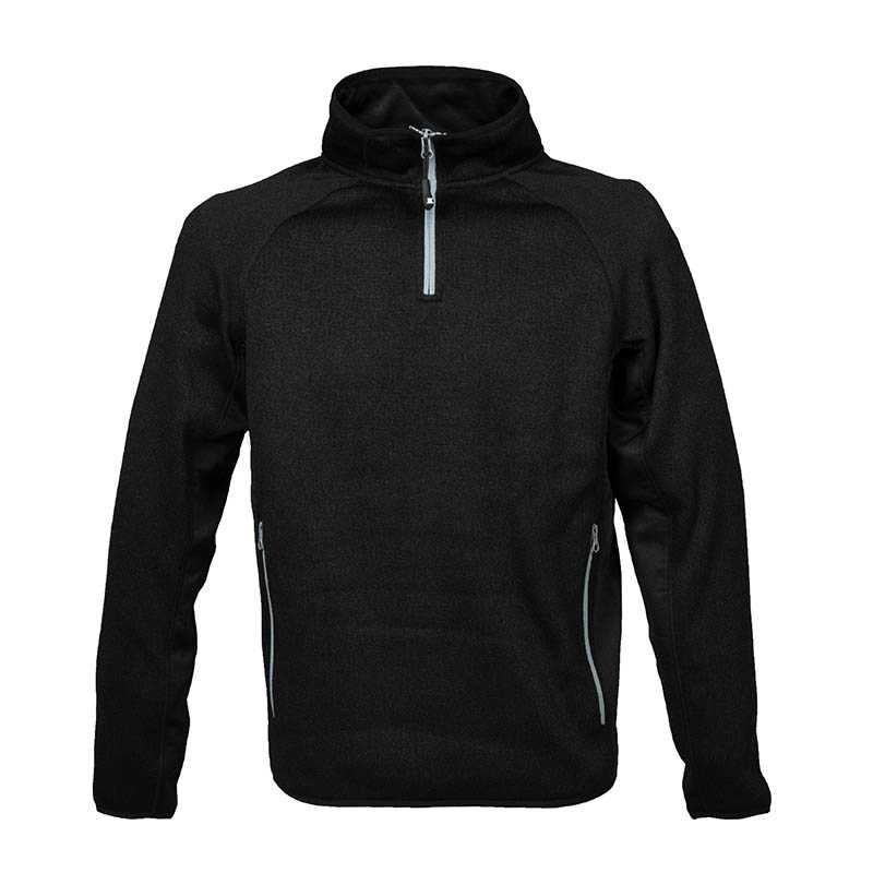 80 % bavlna/20 % polyester (popolová prskaná: 79 % bavlna/20 % polyester/1 % viskóza).Úprava LSF (Low Shrinkage Fleece).3-vláknový kartáčovaný flís z česanej bavlny.Vsadené rukávy.Zips pri krku s plastovým zipsom v rovnakej farbe.Kontrastné podlepený výstrih (kontrastná oxfordská sivá pre všetky farby, okrem tela v oxfordskej sivej a popolovej prskanej, kde je páska pri krku v námorníckej).Rebrované manžety a lem.Certifikát STANDARD 100 podľa OEKO-TEX®N° CQ1007/7, IFTH.