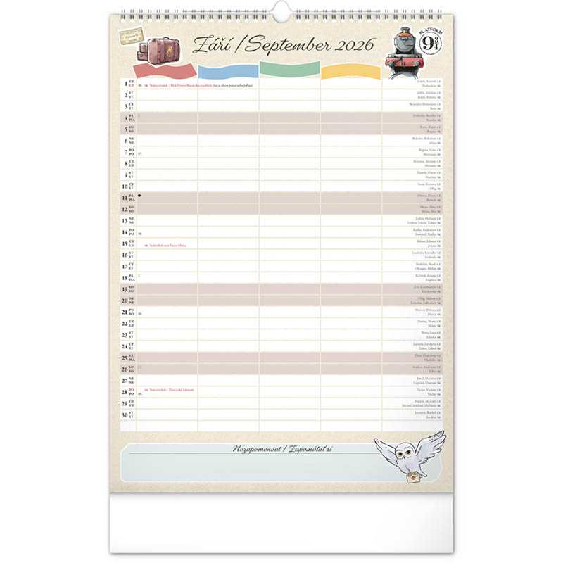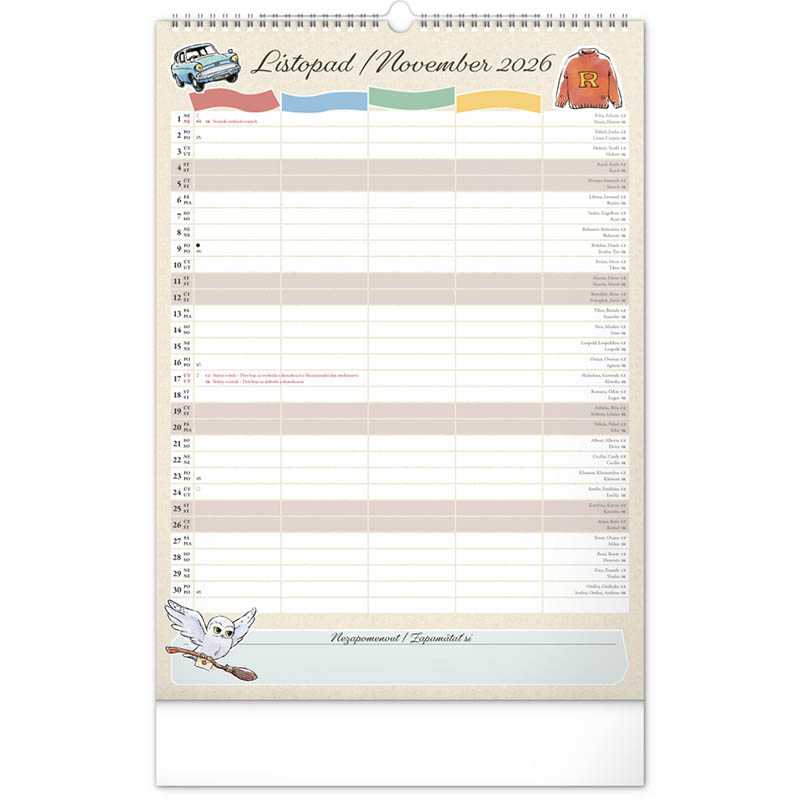Nástenný kalendár (Rodinný plánovací Harry Potter 2026) - 33 x 46 x 1 cm - REPRE - reklamné predmety