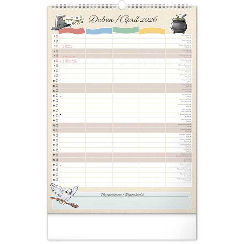 reklamné predmety Nástenný kalendár (Rodinný plánovací Harry Potter 2026) - 33 x 46 x 1 cm