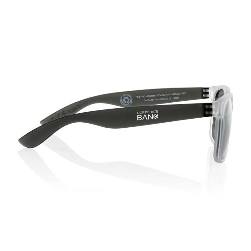 Slnečné okuliare s farebnými zrkadlovými sklíčkami. Sklíčka sú v súlade s EN ISO 12312-1, UV 400 a CAT 3. Vyrobené z RCS recyklovaného PC. RCS (Recycled Claim Standard) je globálny štandard, ktorý umožňuje overiť použitie recyklovaného materiálu v produkte naprieč celým dodávateľským reťazcom. Celkový podiel recyklátu podľa váhy produktu: 72%. Balené v FSC® kraftovej krabičke.