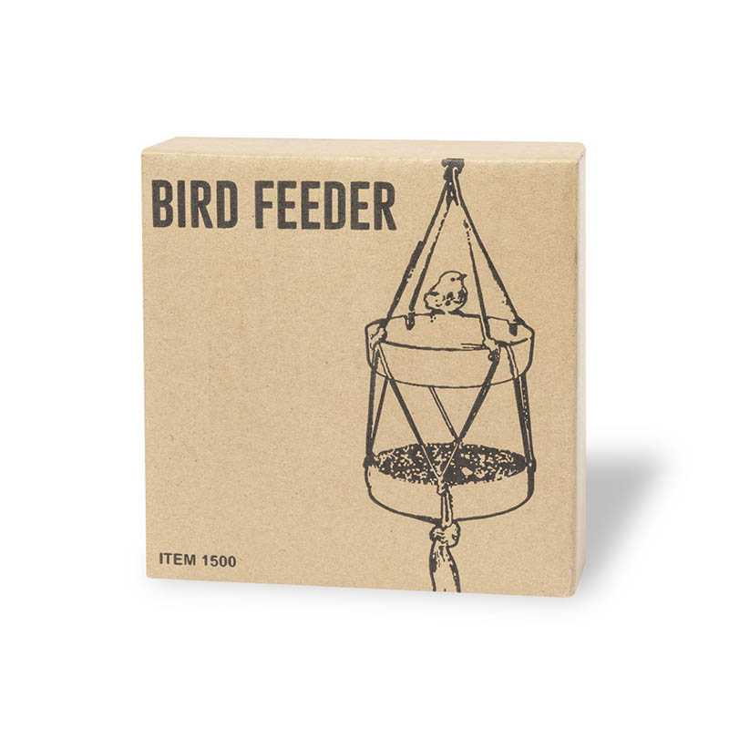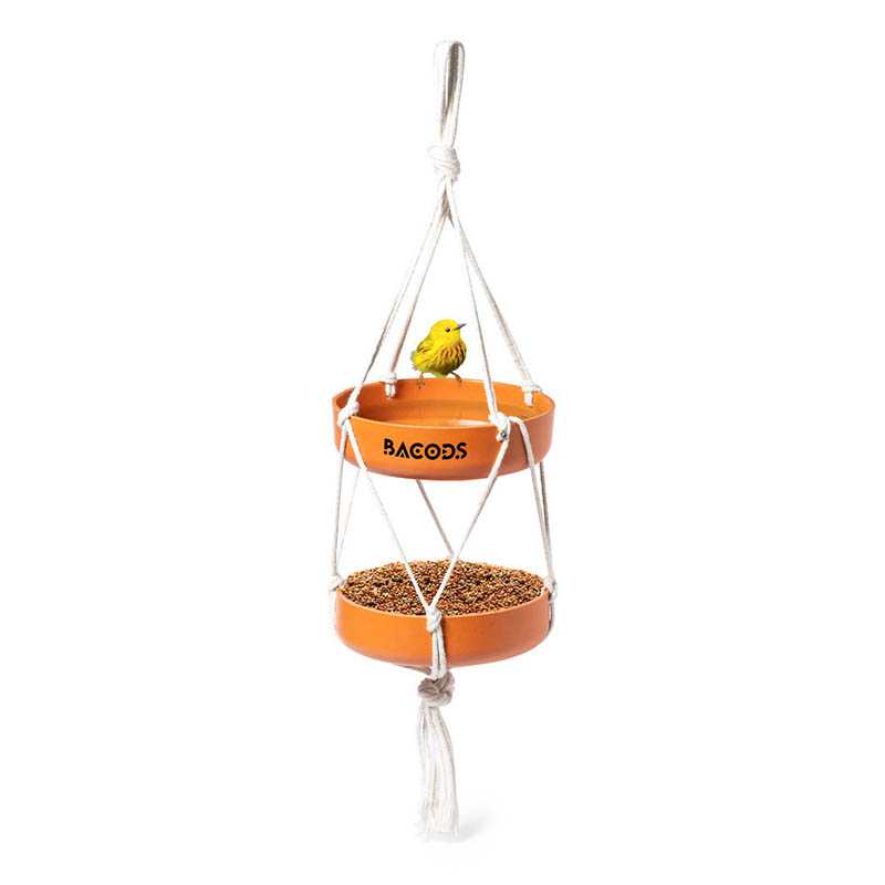 NOVINKA 2025. Hanging feeder for birds. With two bowls made of bamboo fibre (15 x 4 cm each) and resistant natural cotton string. Presented in an individual box with kraft design.