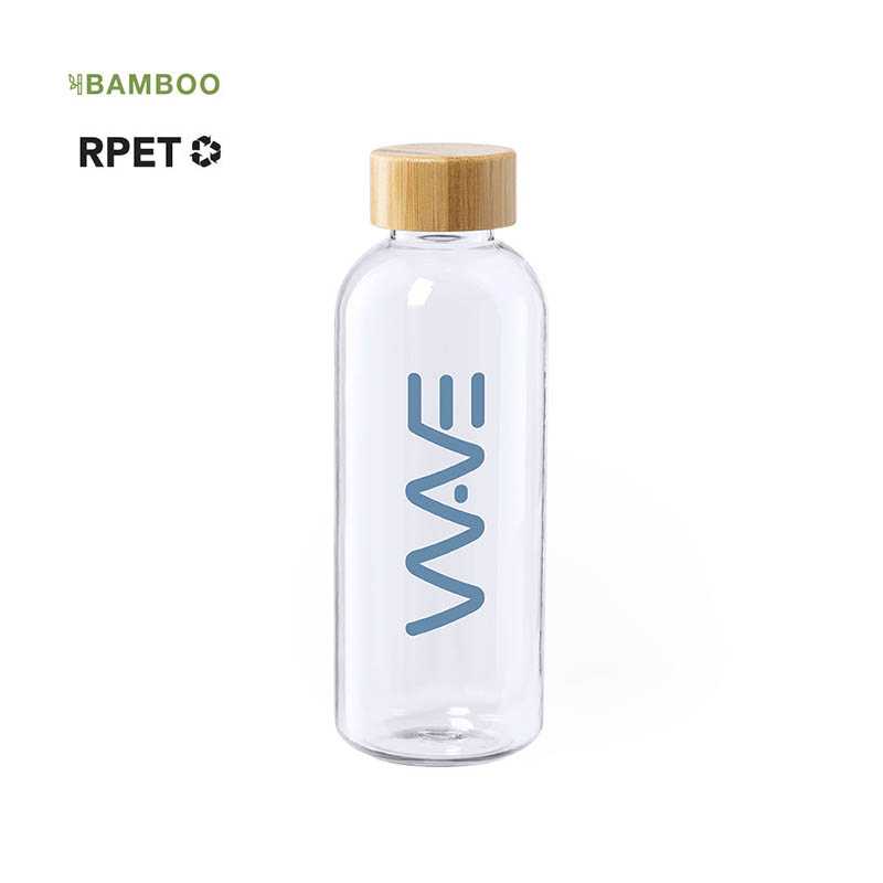 NOVINKA 2025. 600ml nature line bottle. BPA-free, with RPET body made from recycled plastic to encourage the reuse of plastic waste and contribute to the sustainability of the planet. With screw cap in bamboo.
