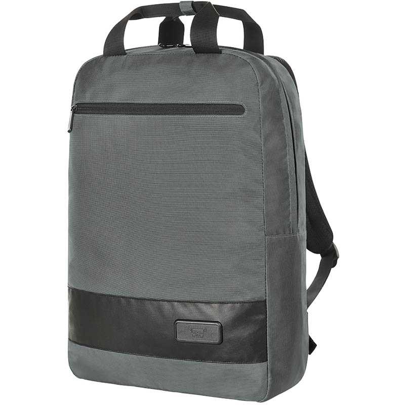 Městský batoh s hlavní přihrádkou na zip a uzavírací sponou; vrchový materiál RPET; polstrovaná zásuvná přihrádka a vnitřní prvky organizéru; boční přední kapsa na zip; dvě boční zásuvné