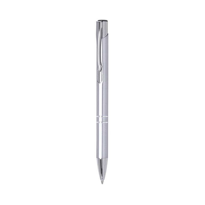 Nerezové farebné guľôčkové pero s modrou náplňou a otáčacím zapínaním, za výhodnú cenu. Nad jeho vysokolesklým klipom sa nachádza dotykový hrot.