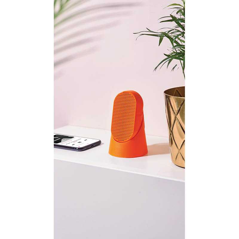 FM radio - 3W Bluetooth® speaker - Splash-proof - Frequency range: FM 88-108MHz - Bluetooth® range: 10m - Battery life: 20 h - Charging time: 4 h - Rechargeable on Micro-USB port (cable included) - Material: silicone rubber caseSuggested branding: silicone ink silkscreen - laser