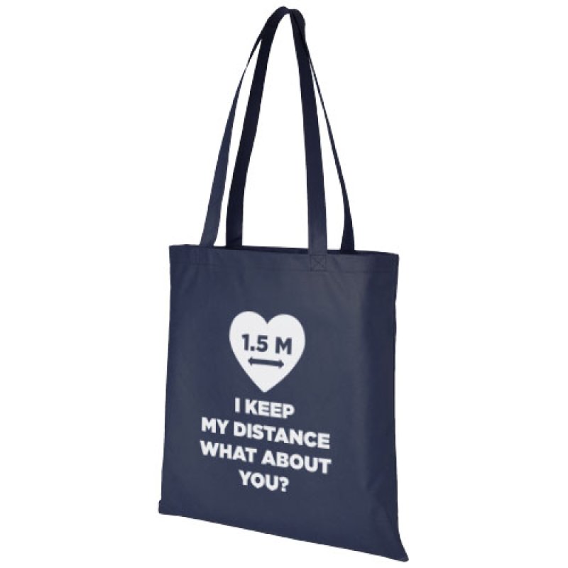 Potřebujete dobrou tašku na jakýkoli veletrh nebo konferenci? Velká taška z netkané textilie Zeus je ideální volbou. Její tenký design z ní dělá elegantní model vhodný pro přenášení lehkých předmětů, jako je notebook a pero. Ucha jsou dlouhá 29 cm, a proto se snadno nosí přes rameno.