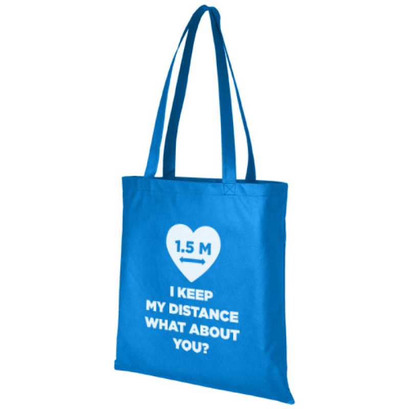 Potřebujete dobrou tašku na jakýkoli veletrh nebo konferenci? Velká taška z netkané textilie Zeus je ideální volbou. Její tenký design z ní dělá elegantní model vhodný pro přenášení lehkých předmětů, jako je notebook a pero. Ucha jsou dlouhá 29 cm, a proto se snadno nosí přes rameno.
