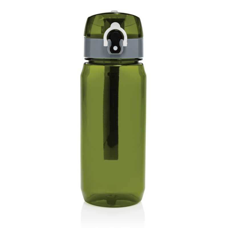 Fľaša na vodu s nepriepustným uzamykateľným uzáverom. Jednoduché ovládanie aj jednou rukou. Vyrobená z RCS recyklovaného PET plastu. RCS (Recycled Claim Standard) je globálny štandard, ktorý umožňuje overiť použitie recyklovaného materiálu v produkte naprieč celým dodávateľským reťazcom. Celkový podiel recyklátu podľa váhy produktu: 73%. Len na studené nápoje a na ručné umývanie. Bez BPA. Objem: 600 ml. Balené v FSC® kraftovej darčekovej krabičke.