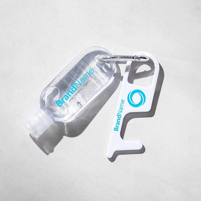 NOVINKA 2025. Hygienic, antibacterial and anti-contact safety key ring, made of resistant ABS with a solid finishing. Specially designed to avoid touching public usage surfaces with your hands (door handles, switches, public use taps, ATMs…). With comfortable cut-out for the finger and presented in an individual bag. Recommended for pad printing.Products with antibacterial treatments are able to drastically reduce the bacterial levels present on the surfaces of the materials, thanks to the addition of permanent static microbial agents, with high effectiveness in inhibiting and preventing bacterial contamination.Item according to the ISO 22196 standard, which determines the antibacterial activity in plastic materials and non-porous surfaces. This allows us to know the effectiveness of microbial inhibition that additives have on treated objects by means of a quantitave evaluation.