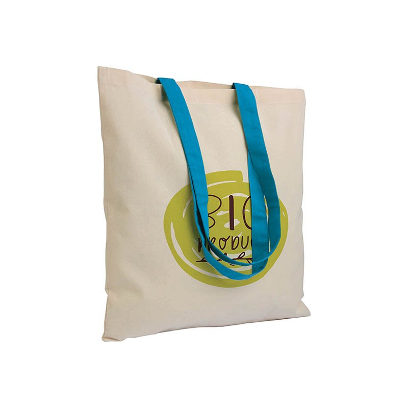 135 g/m2 natural cotton shopping bag with coloured long handles