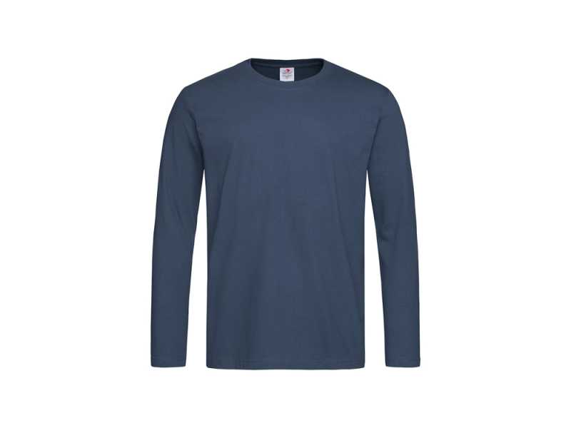 Fitted long sleeve T-shirt for men features collar with rib binding and made of durable single jersey cotton. collar with rib binding, side seams, small size label in the collar, care label in the side seam