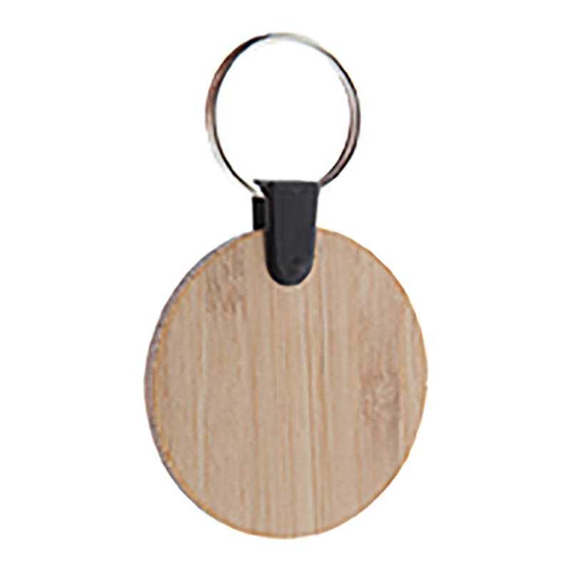 Prívesok na kľúče z prírodného bukového dreva s kovovým krúžkom.