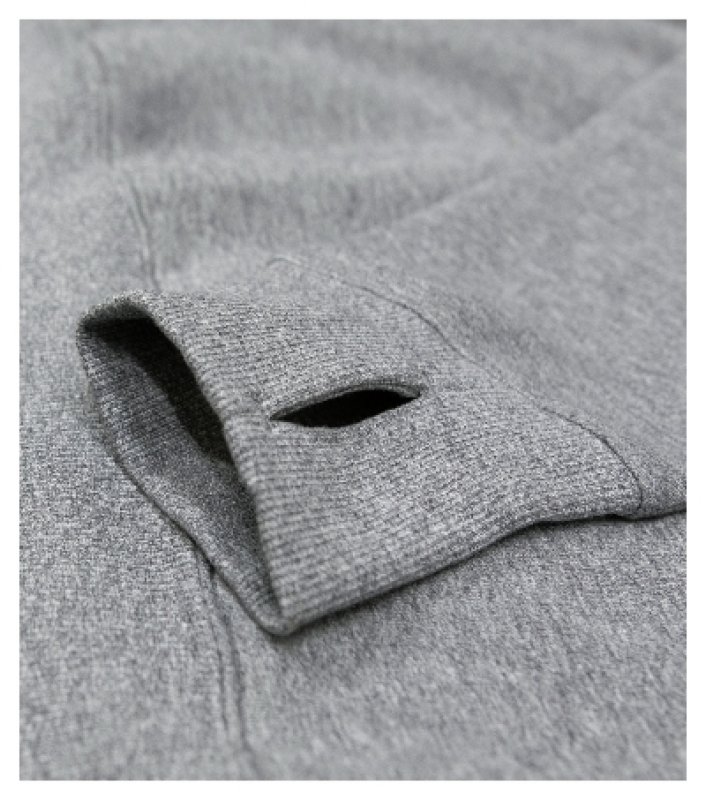 Kruhově dopřádaná bavlna. Designová dvouvrstvá kapuce. Velká klokaní kapsa. Kapsa na rukávu se zipem. Manžety ze sladěné tkaniny