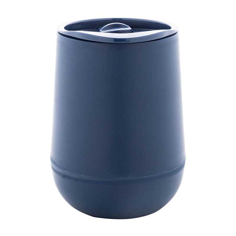 NOVINKA 2025. Dvoustěnný pohárek z PP s víčkem s posuvným zavíráním. Materiál víčka PS a ABS. Objem: 300 ml.