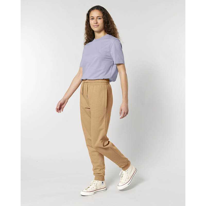 Tepláky s česanou podšívkou. Široká šnúrka v páse, dve bočné vrecká. Zadné vrecko na pánskej verzii. Rovný strih. Materiál: 80% organická bavlna 20% recyklovaný polyester. Gramáž: 280 g/m2. Certifikáty: GOTS, Fairtrade Cotton, Nordic Swan Ecolabel, Oeko-Tex