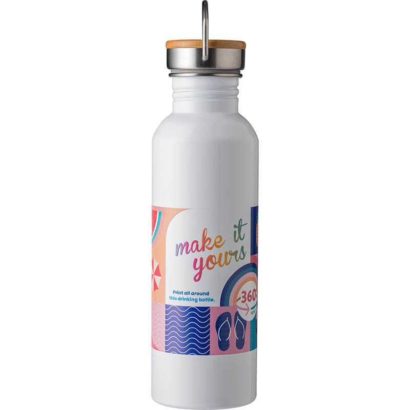 Stainless steel (s/s304) drinking bottle (700 ml) with bamboo screw cap.