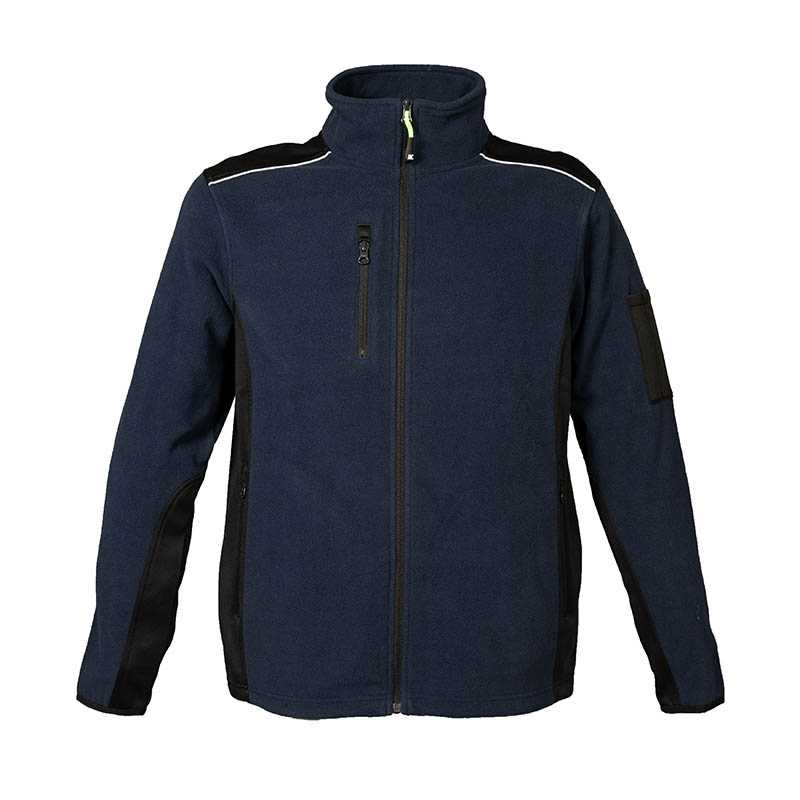 Bicoloured antipilling fleece, 100% polyester - Hips, shoulders, upper back and forearms in bonded interlock fabric - YKK taped zippers - Front reflective piping on the shoulders and on the back - Long zip - A zip pocket on the chest - Triple pen holder on the arm - Two zip pockets - Elastic fabric at the wrists - Drawstring at the bottom