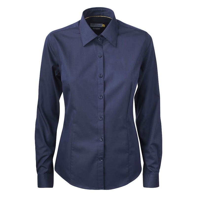 High quality ladies shirt in combed cotton. Shirt in easy care treated fabric and enhanced lining seams, collar and sleeve ends. Body in check pattern with contrast fabric under collar, placket, sleeve and necktape. Modern fit with cutting seams at back. • 100% Cotton • 513 LIGHT BLUE , 613 NAVY, 913 GREY • XS-XXL