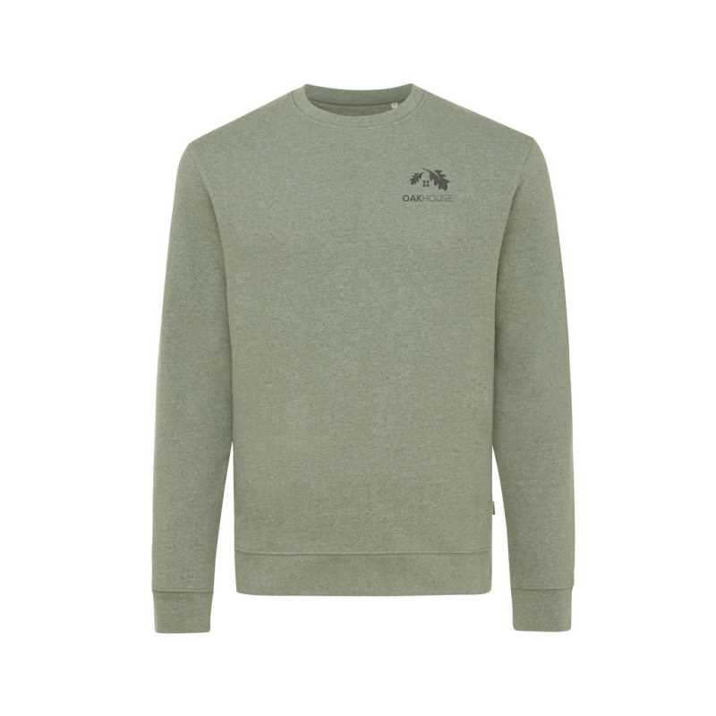 Kvalita.80 % organicky pestovaná bavlna – 20 % recyklovaný polyester.3 priadze .Kartáčovaná podšívka.Zvonku: 100 % organická bavlna.Štýl.Strihané a šité.Raglánové rukávy.2 x 2 rebrované manžety, golier a spodný okraj.Polmesiac vnútri goliera.Páska na krku.