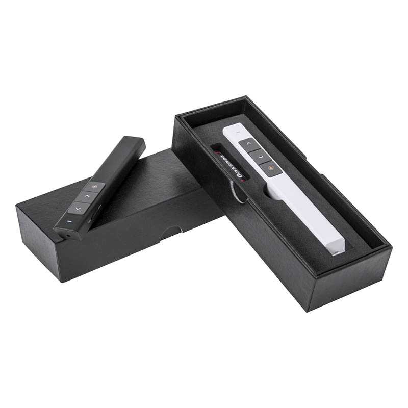 Plastové laserové ukazovadlo s LED svetlom a diaľkovým ovládaním prezentácie. V darčekovej papierovej krabičke, vrátane 1 AAA batérie.