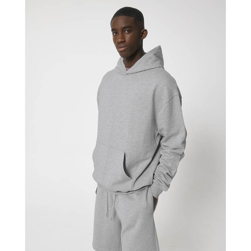NOVINKA 2025. Raglan sleeves Double layered hood in self fabric Kangaroo pocket at front 1x1 ribs at sleeves cuffs and bottom hem 1x1 ribs side panels 1X1 ribs bindings at pocket openings Double needle topstitches at collar , sleeves cuffs and bottom hem