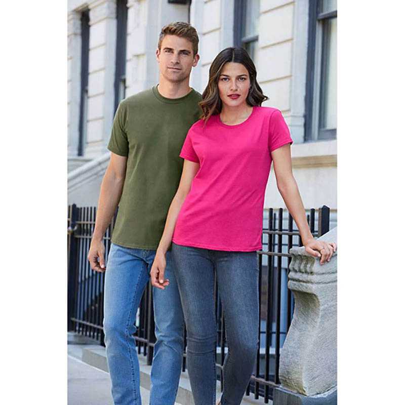 The popular heavyweight choice made of durable ring-spun cotton: soft women’s T-shirt with side seams.