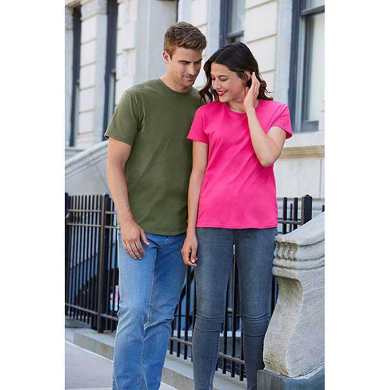 100 % americká bavlna, 180,0 G/m2 (biela 170,0 G/m2).Ťažká bavlna ponúka širokú paletu farieb v rôznych siluetách.Úzka šírka, rebrovaný golier.Podlepený golier a ramená pre pohodlie a odolnosť.Extra krátke rukávy.Čiastočne vypasované telo s bočnými švami.Odolný odtŕhací štítok; prechod na recyklovaný materiál. Sprievodné štýly: GI5000, GIB5000, GIP5100.