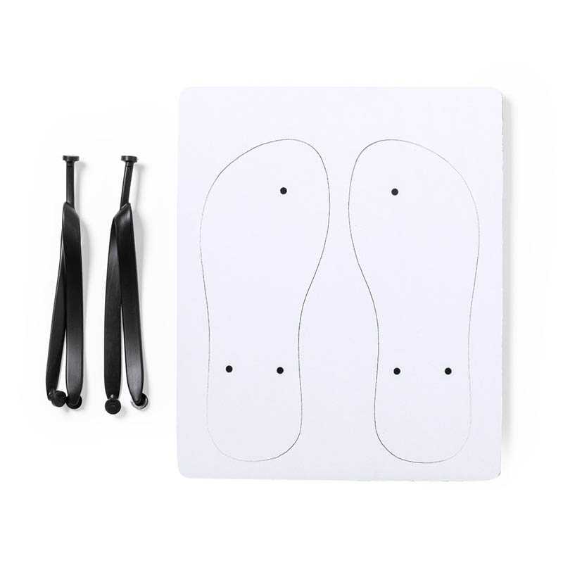 NOVINKA 2025. Pair of flip flops with 100% customisable soles and specially designed for sublimation printing. With resistant EVA sole, black PVC straps and available in two sizes: 36-38 and 42-44. Set including die-cut EVA panel for customization.