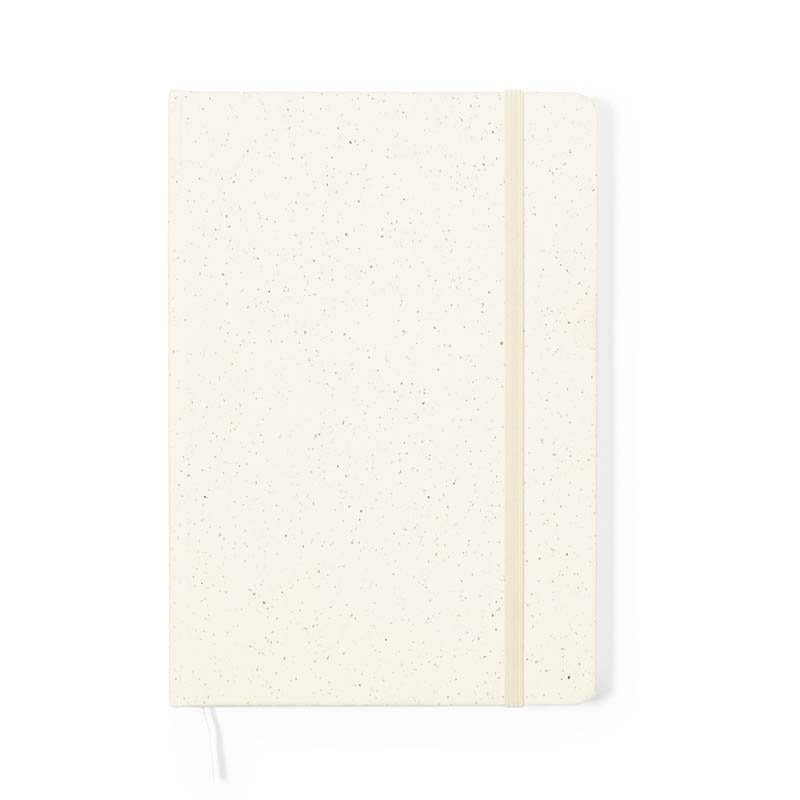 Blok potiahnutý recyklovanou bavlnou s 80 linajkovými listami z recyklovaného papiera. So záložkou v zodpovedajúcej farbe, gumičkou a držiakom na pero. Veľkosť A5.