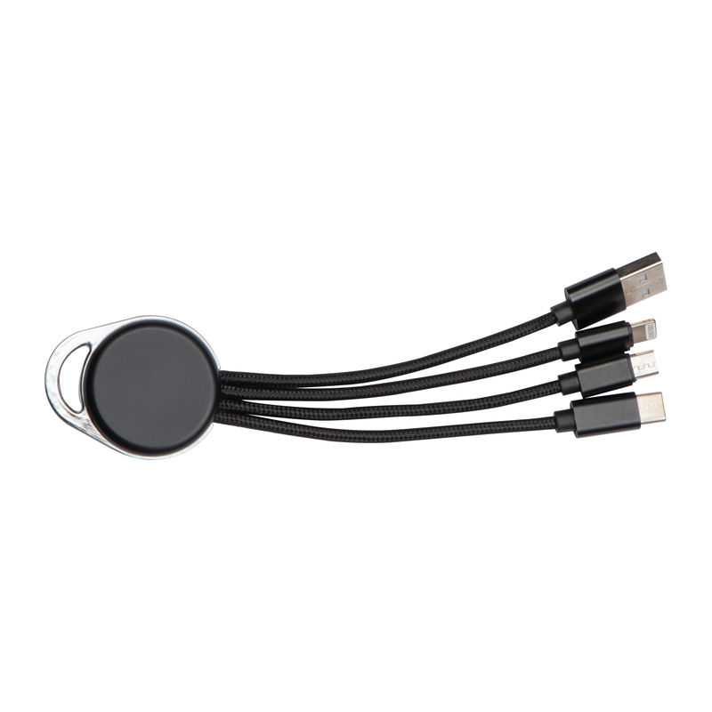 Kompaktný nabíjací kábel 3 v 1 s konektormi USB typu C a dvojitým pre zariadenia s iOS alebo Android využívajúce micro USB. Vďaka svinovacímu mechanizmu je 1m dlhý kábel skladný a vhodný na cesty. Puzdro z ABS, bužírka kábla z TPU. Pre nabíjanie aj synchronizáciu dát.