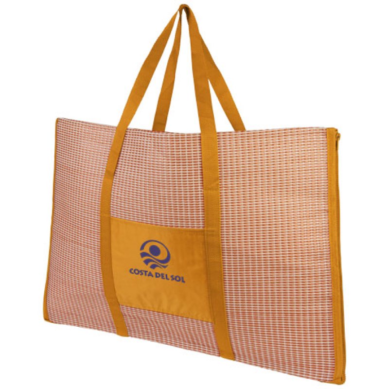 Skládací plážová podložka 2-v-1, kterou lze složit do praktické tašky 60 x 44 cm. Má kapsu a součástí je nafukovací polštářek. Nosná výška popruhů 28 cm.
