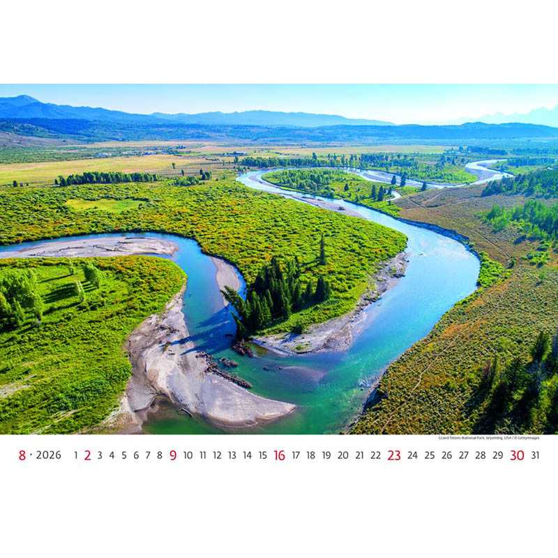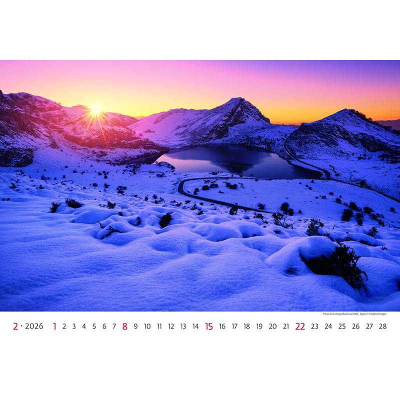 Nástenný kalendár National Parks 2026. Formát kalendára: 45 x 31,5 cm. Kalendárium: mesačné medzinárodné. Rozsah kalendára: 14 listov. Twinová väzba. Priestor na potlač: 45 x 7 cm