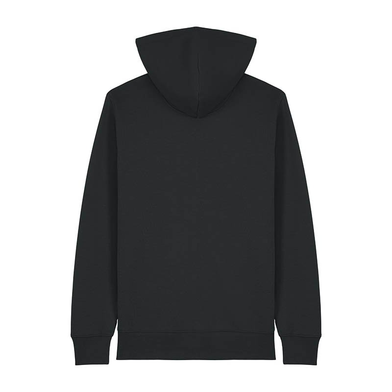 Bavlna s dlouhými vlákny. Kruhově dopřádaná bavlna. 3vláknitá tkanina pro hladký povrch. Dvouvrstvá kapuce. Žebrování s elastanem pro lepší stabilitu. Dvojité prošívání. Dvojité barvení. Česaná vnitřní úprava. Bez potisku lze prát při 60 °C