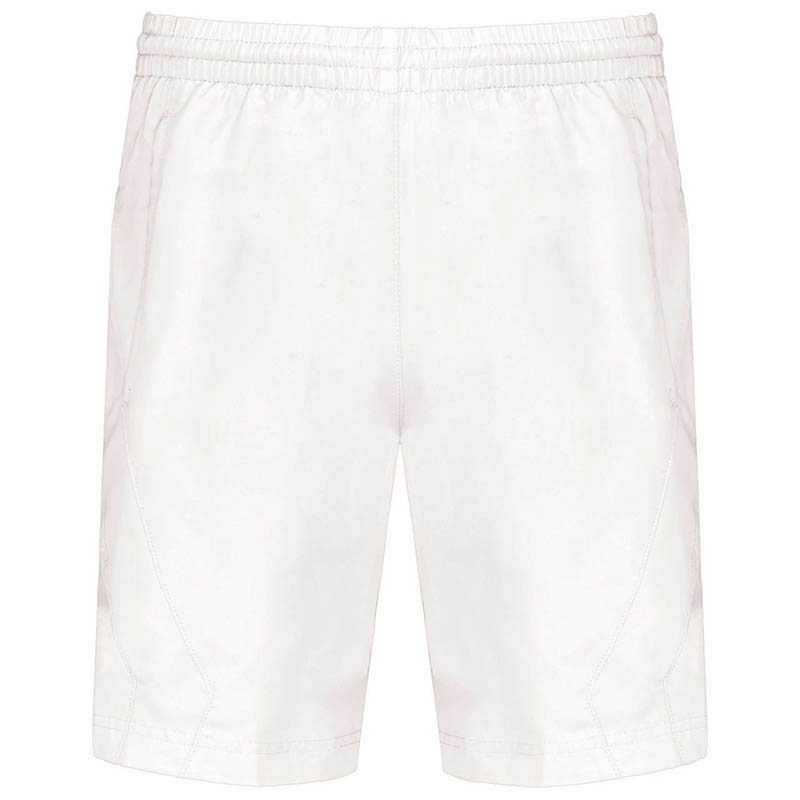100 % polyester.Rýchloschnúca tkanina.2 bočné vrecká.Elastický pás so sťahovacou šnúrkou.Zabudovaná sieťovaná spodná bielizeň.Lem na bokoch v rovnakej farbe.