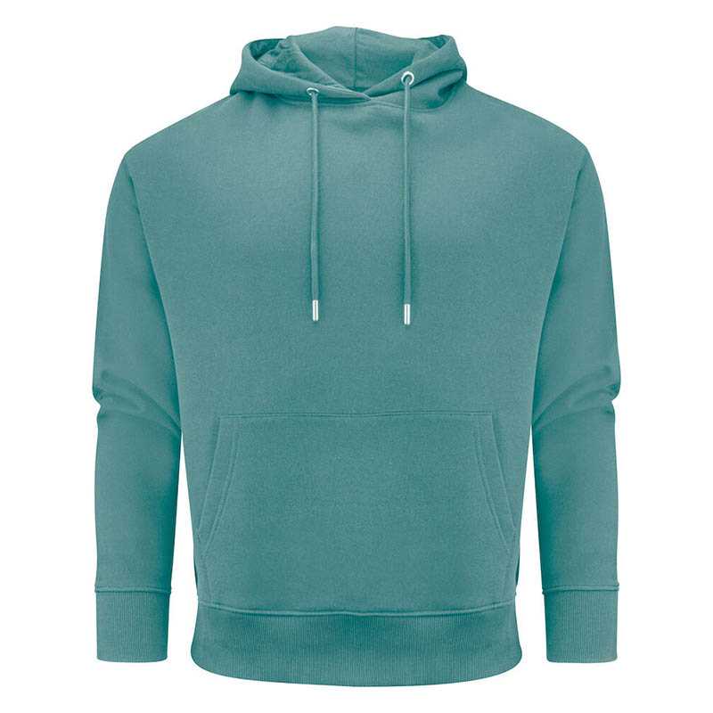 NOVINKA 2024. Relaxed hoodie with dropped shoulders and kangaroo pocket on the front. Wide rib endings at sleeve and bottom hem. Tone on tone drawstring with metal bulletpoints.   Colors: 120 grey melange, 484 dusty red, 514 summer blue, 600 navy, 784 aloe green, 900 black 85% Organic Cotton, 15%, Recycled Polyester 350 g/m2, szczotkowana wewnętrznie  Oeko-Tex, OCS, GRS certified