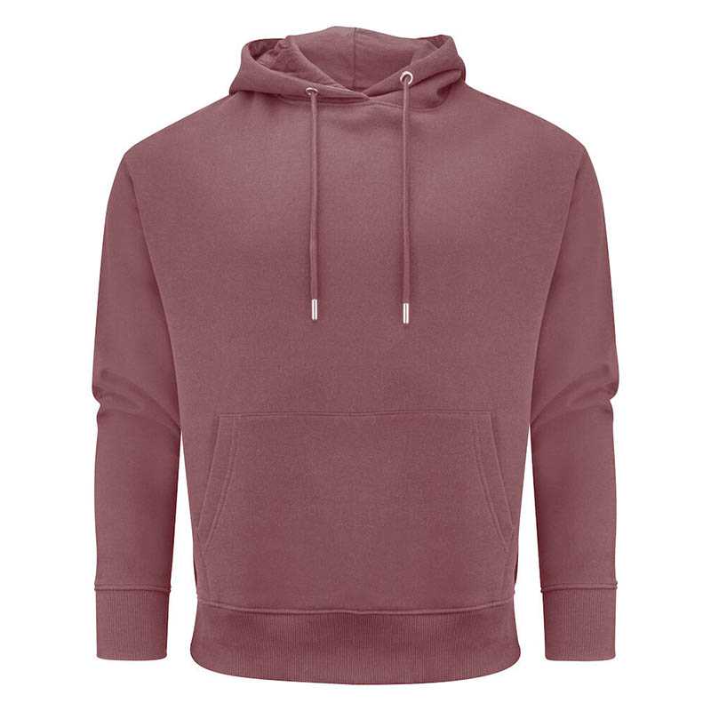NOVINKA 2024. Relaxed hoodie with dropped shoulders and kangaroo pocket on the front. Wide rib endings at sleeve and bottom hem. Tone on tone drawstring with metal bulletpoints. Colors: 120 grey melange, 484 dusty red, 514 summer blue, 600 navy, 784 aloe green, 900 black 85% Organic Cotton, 15%, Recycled Polyester 350 g/m2, szczotkowana wewnętrznie Oeko-Tex, OCS, GRS certified