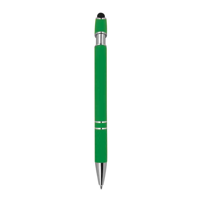 Štíhlé hliníkové glazované kuličkové pero s otočným mechanismem a stylus.