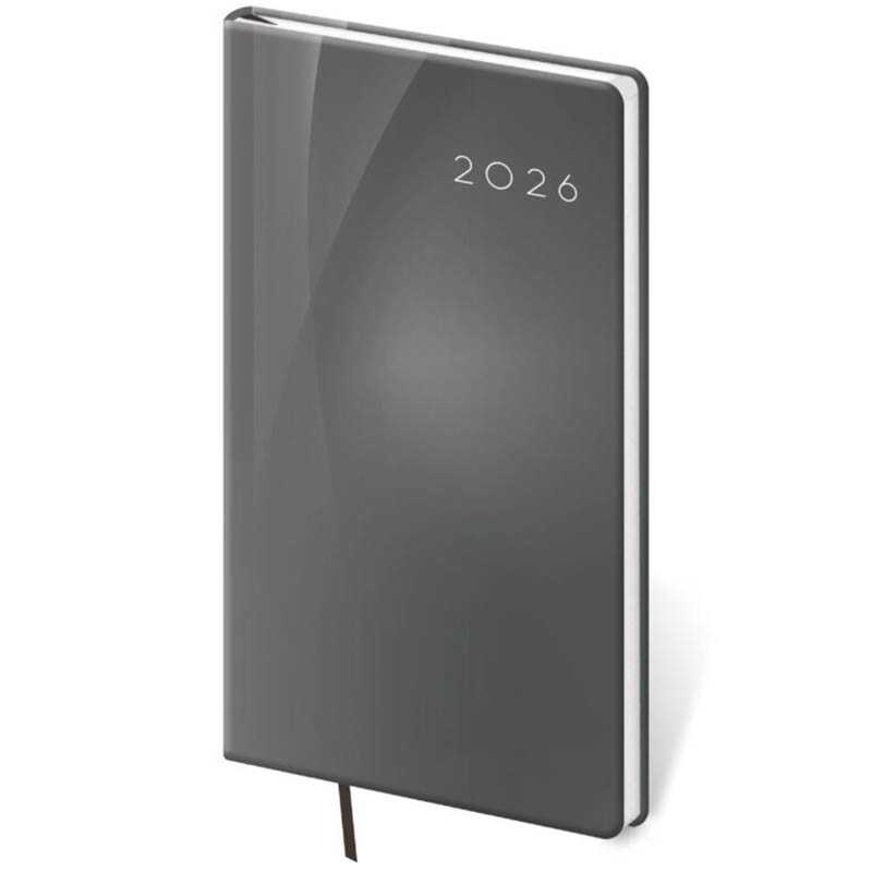 Nová, cenovo dostupná rada diárov s obálkou z ekologického papiera spája štýl a udržateľnosť. Týždenné rozloženie s česko-slovenským kalendáriom a doplnkovou angličtinou, nemčinou, maďarčinou a ruštinou.• kalendárium od decembra 2025• ročný plánovací kalendár 2026–2027 • pracovný plánovací kalendár • sviatky Českej a Slovenskej republiky a medzinárodné sviatky • rozšírený zoznam českých mien • miesto pre osobné údaje • perforované rožky• priestor pre poznámkyRozsah: 128 strán. Rozmer: 9 x 15,5 x 1 cm. Hmotnosť: 0,08. Papier: 70 g/m2 krémový papier. Väzba: tuhá knižná. Kalendárium: 6 jazyčné (CZ, SK, GB, DE, HU, RU) .
